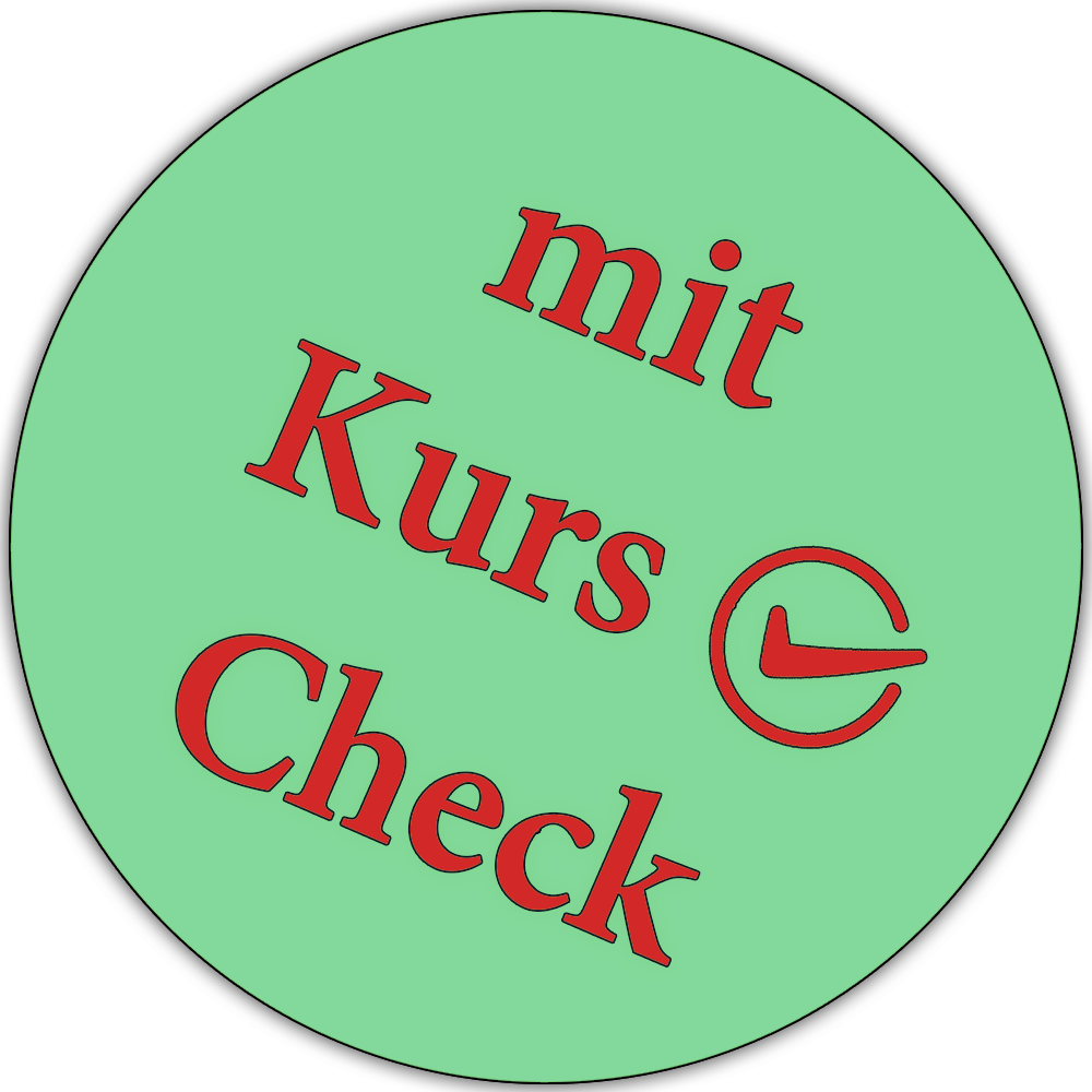 Bitte beachten: Kursabsagen bis 4 Wochen vor Kurstermin können über eine Umbuchung kulant geregelt werden. 28 Tage vor dem Kurstermin müssen wir leider die volle Kursgebühr einbehalten, wenn so kurzfristig kein Ersatzteilnehmer einspringen kann.
